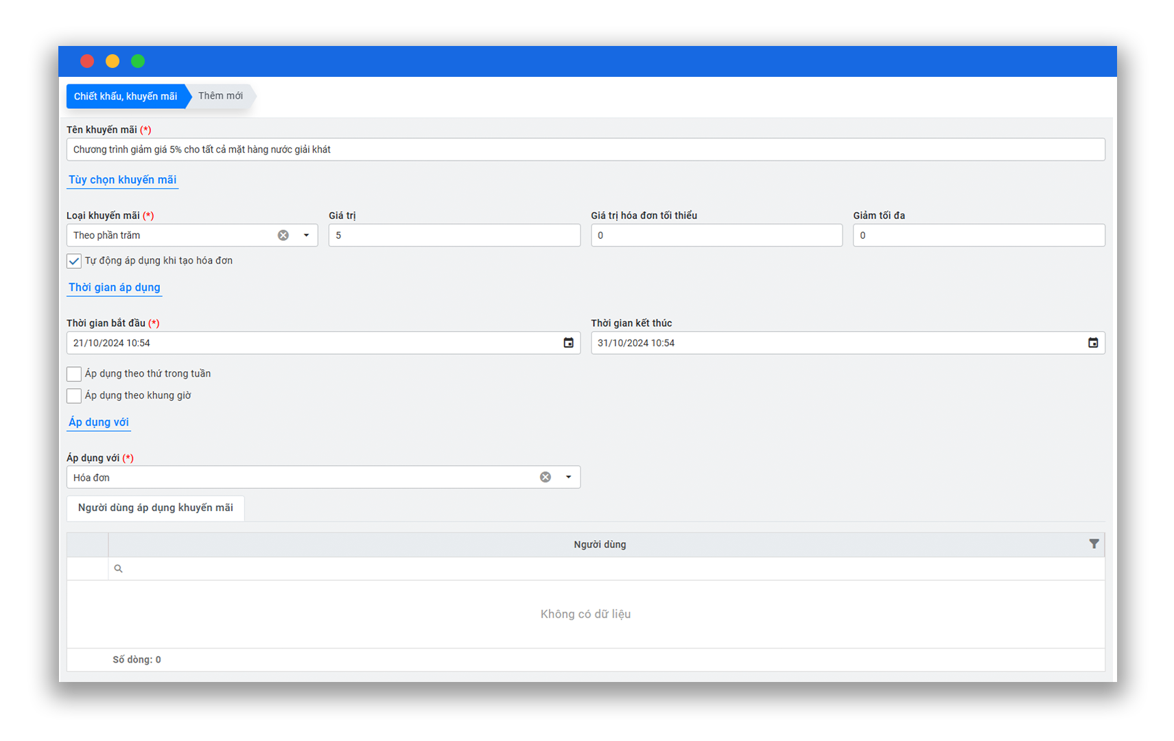 Quản lý chương trình chiết khấu, khuyến mãi